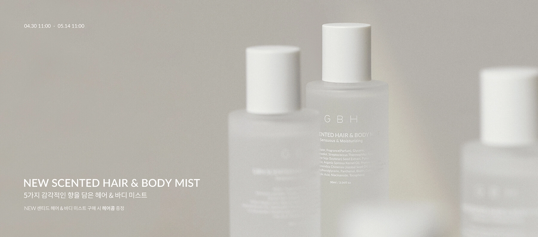감각적인 향과 고농축 오일을 담아 풍부한 향취와 보습 효과를 선사하는 GBH SCENTED HAIR & BODY MIST의 비주얼 작업을 진행하였습니다. 촬영 기획과 현장 디렉팅을 비롯해 이미지 편집, 웹용 이미지 및 광고 소재 제작까지 전반적인 과정에 참여하였으며, 제품에 대한 높은 이해도를 바탕으로 완성도 있는 결과물을 도출하였습니다.