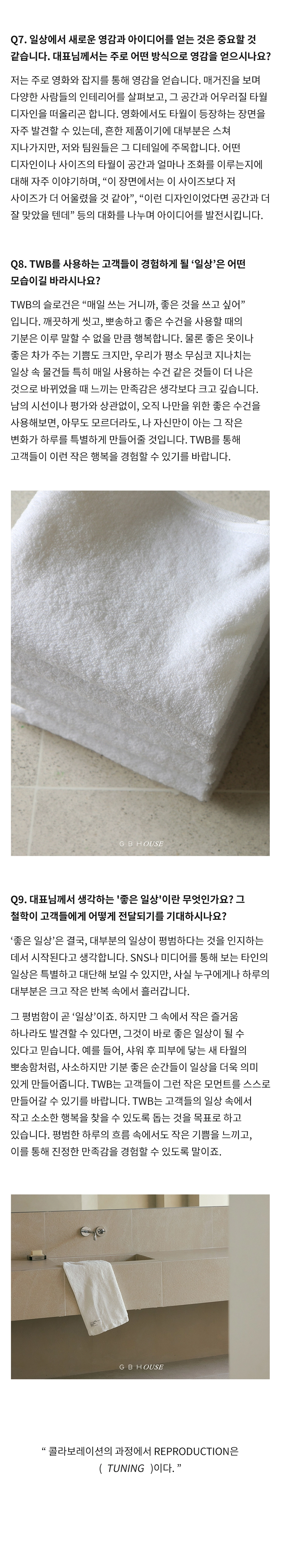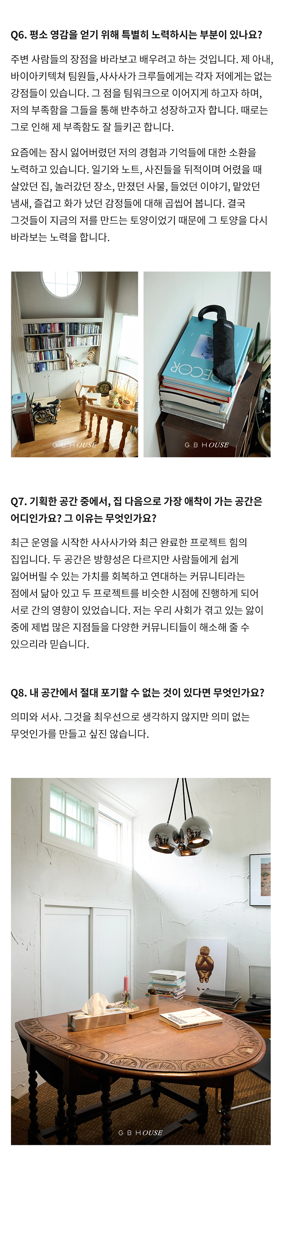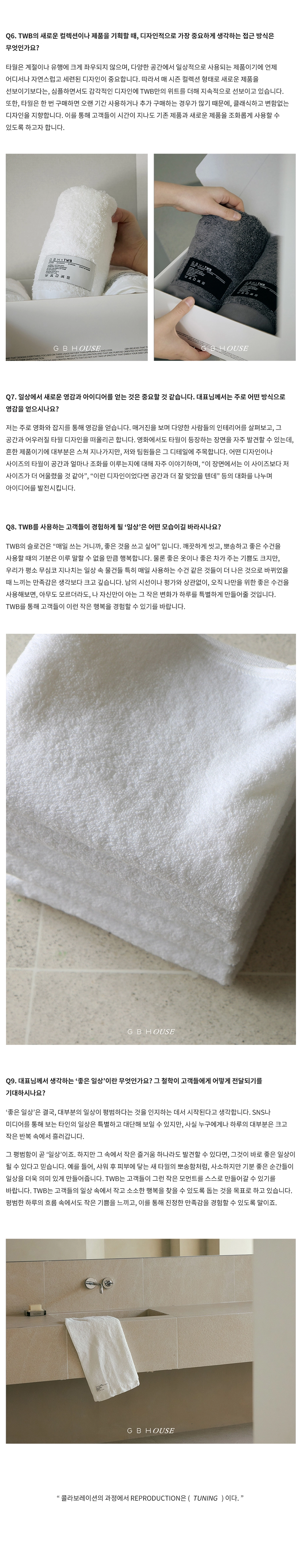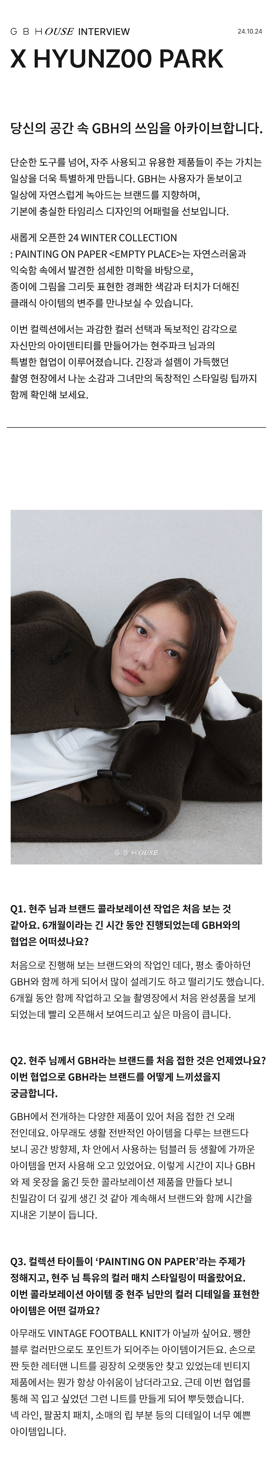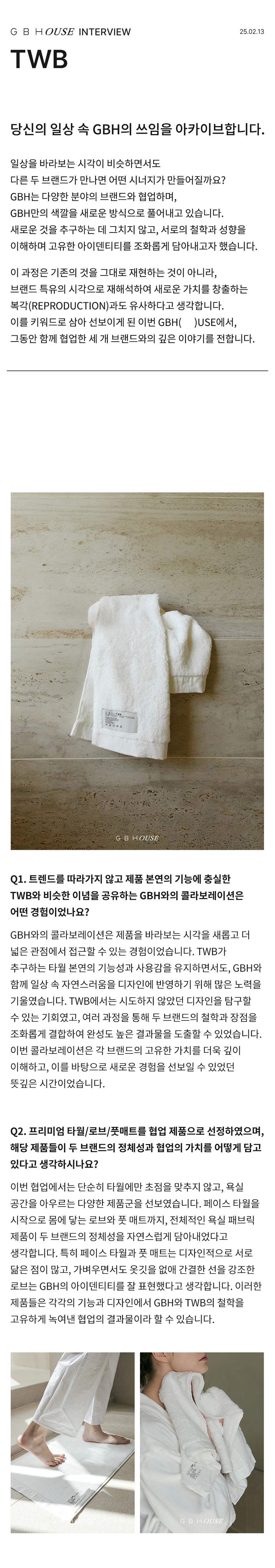 GBH()USE는 자사 제품이 일상 속에서 어떻게 활용되는지를 보여주는 콘텐츠 시리즈로, 다양한 인터뷰와 협업을 통해 브랜드의 철학과 제품을 자연스럽게 담아냅니다. 디자이너, 인플루언서 등 다양한 직군의 유저들과 함께 콘텐츠를 기획하고, 그들의 공간에서 제품이 사용되는 모습을 중심으로 구성되었습니다. 기획 의도에 맞춰 전반적인 편집 업무를 담당하여 효과적인 메시지 전달을 도왔습니다.