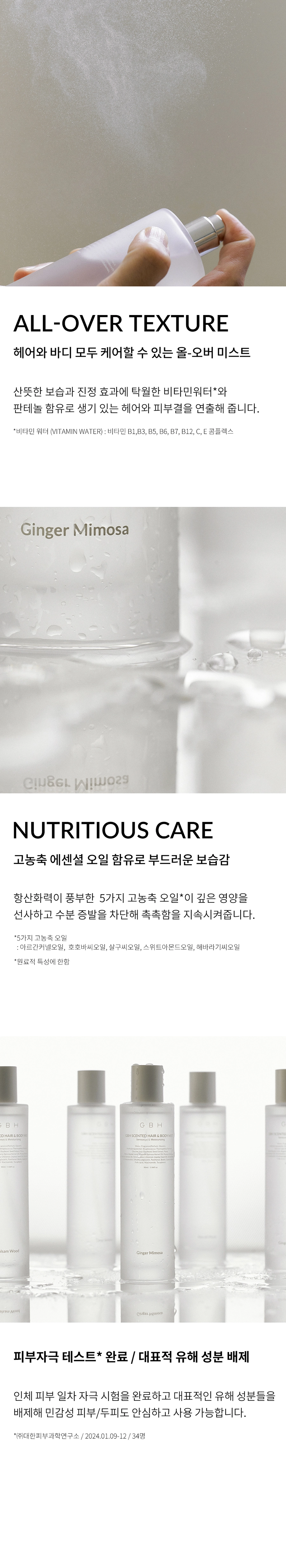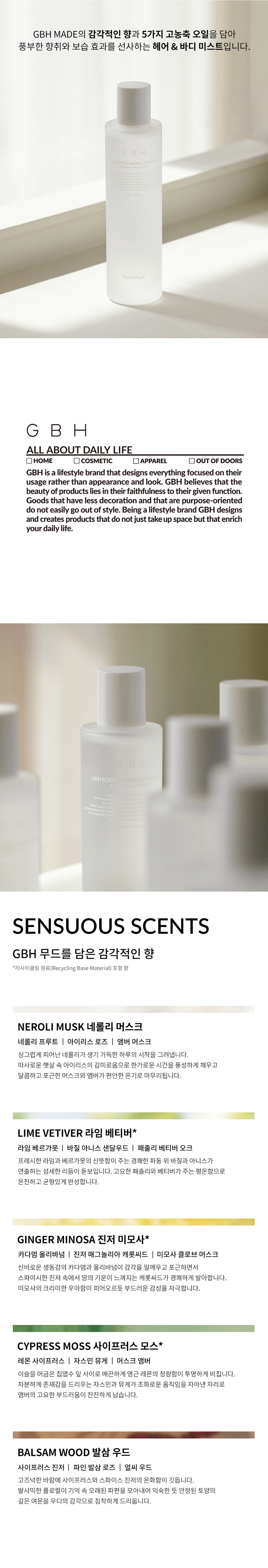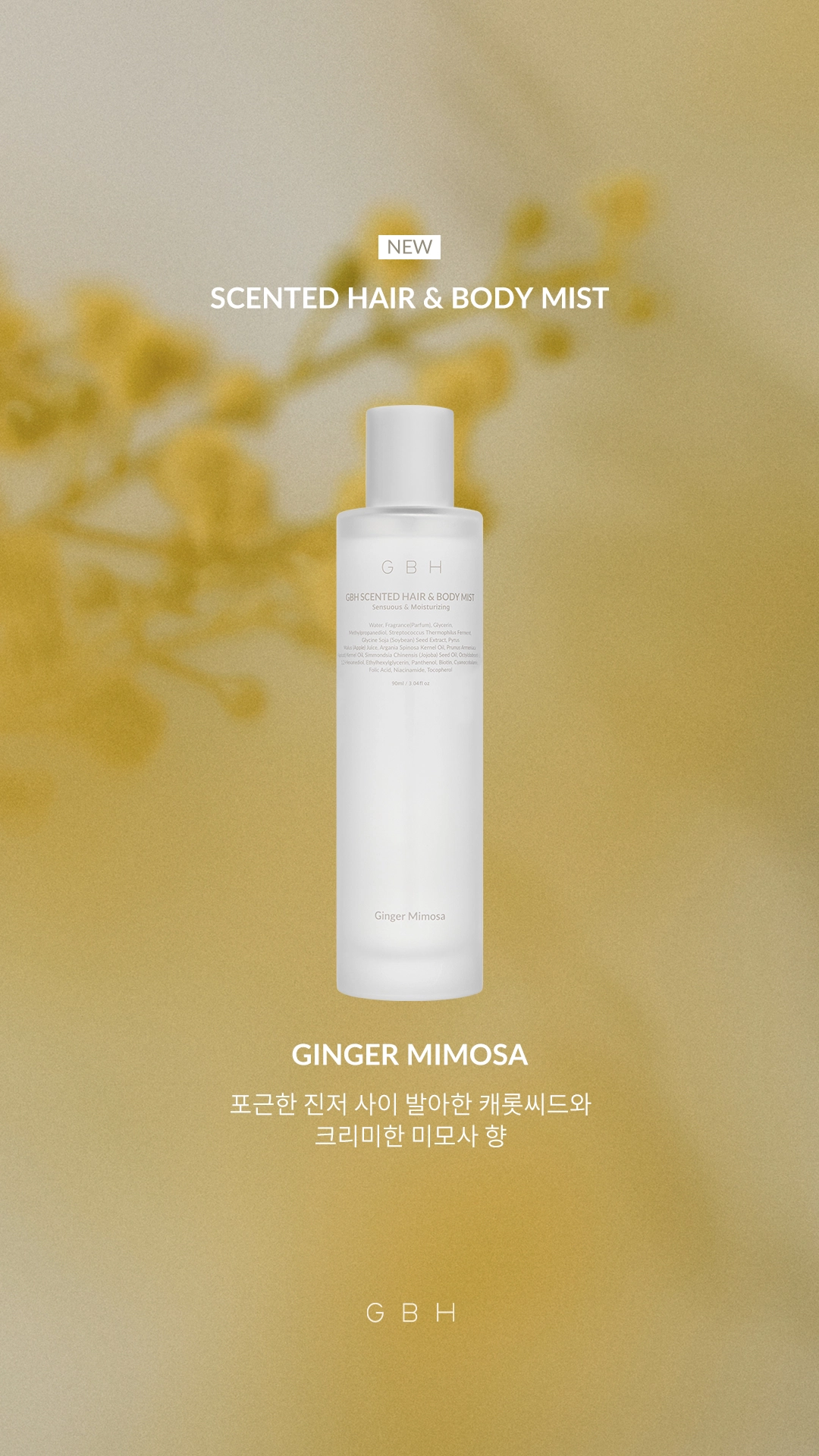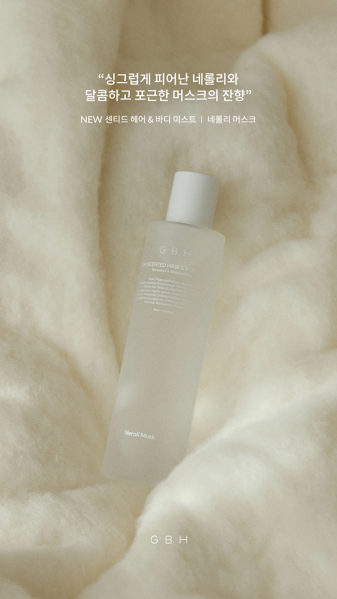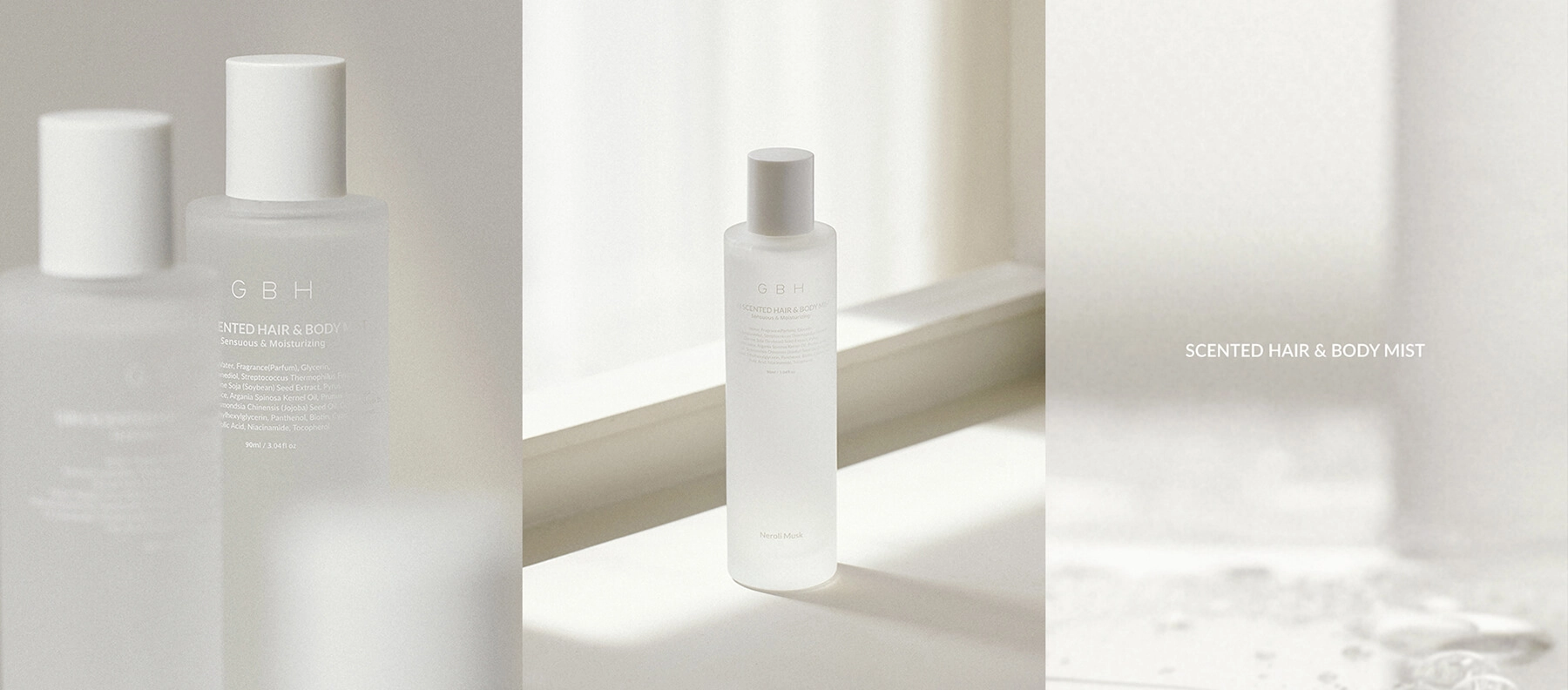 감각적인 향과 고농축 오일을 담아 풍부한 향취와 보습 효과를 선사하는 GBH SCENTED HAIR & BODY MIST의 비주얼 작업을 진행하였습니다. 촬영 기획과 현장 디렉팅을 비롯해 이미지 편집, 웹용 이미지 및 광고 소재 제작까지 전반적인 과정에 참여하였으며, 제품에 대한 높은 이해도를 바탕으로 완성도 있는 결과물을 도출하였습니다.
