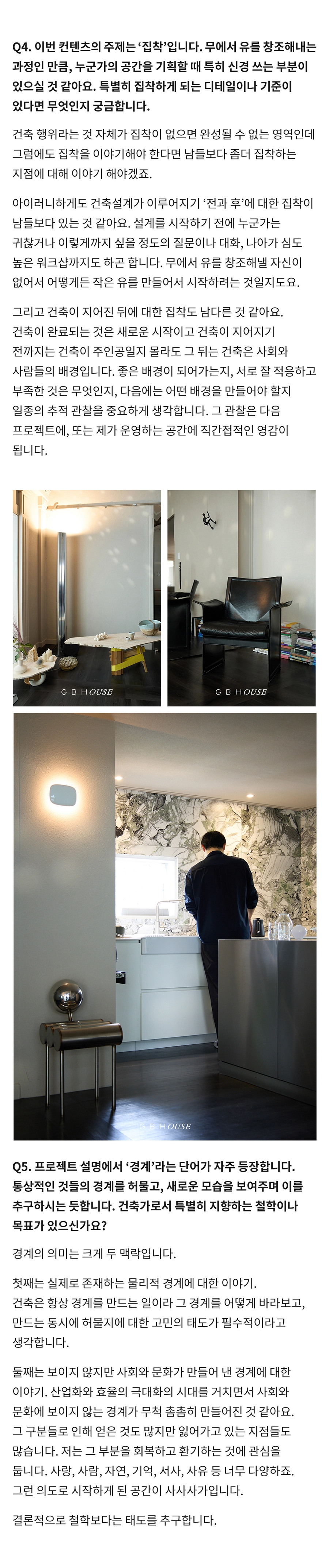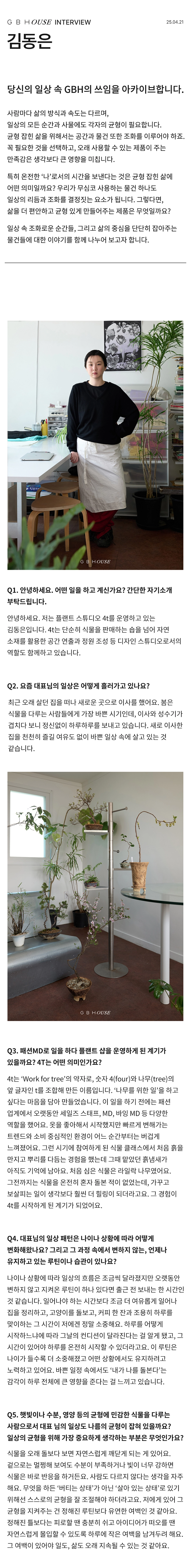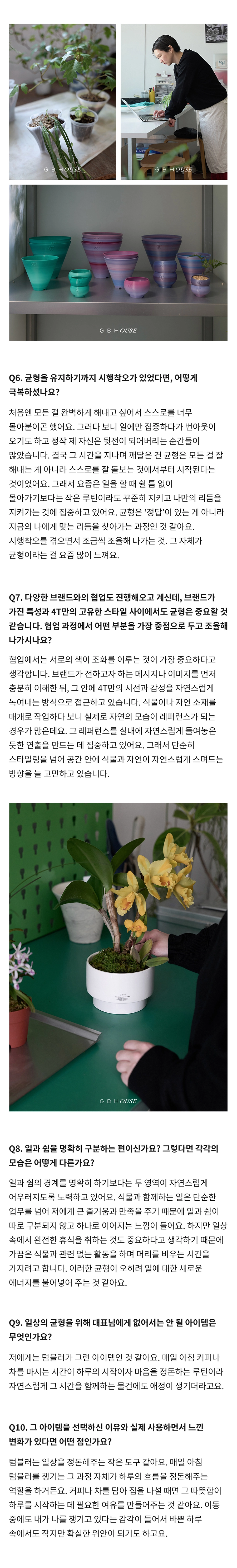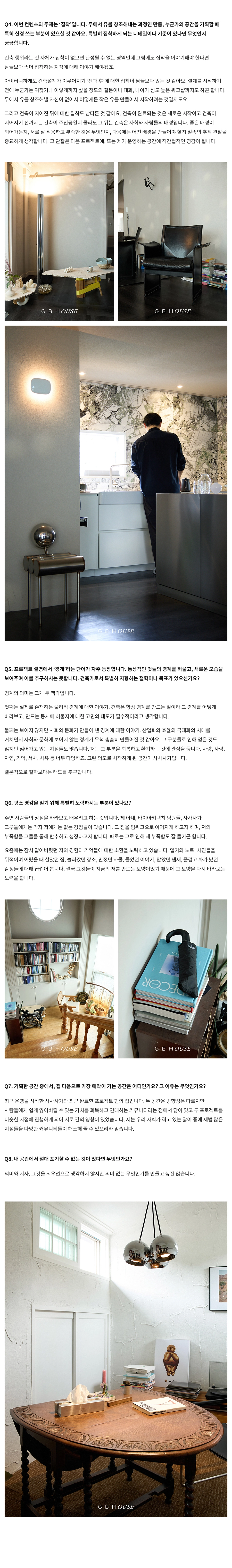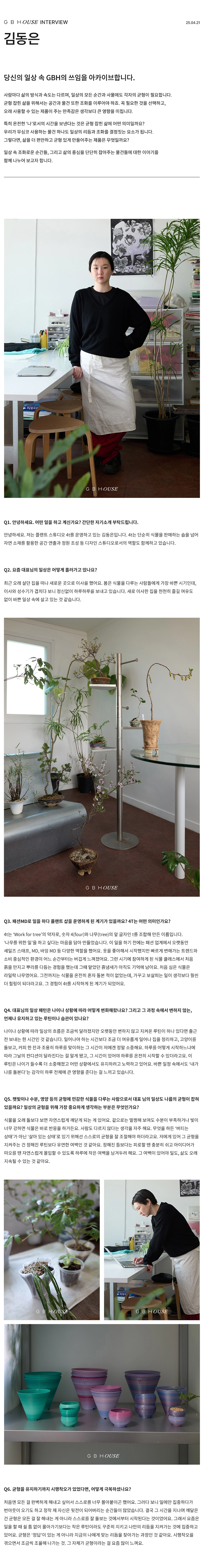 GBH()USE는 자사 제품이 일상 속에서 어떻게 활용되는지를 보여주는 콘텐츠 시리즈로, 다양한 인터뷰와 협업을 통해 브랜드의 철학과 제품을 자연스럽게 담아냅니다. 디자이너, 인플루언서 등 다양한 직군의 유저들과 함께 콘텐츠를 기획하고, 그들의 공간에서 제품이 사용되는 모습을 중심으로 구성되었습니다. 기획 의도에 맞춰 전반적인 편집 업무를 담당하여 효과적인 메시지 전달을 도왔습니다.